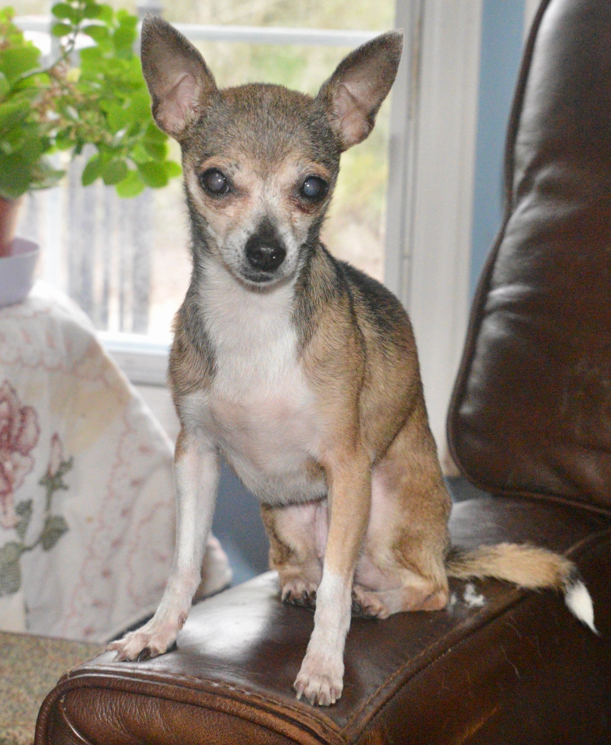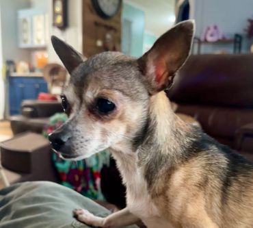 Tiny is an 8 year old spayed female chihuahua. She is your typical nervous little chihuahua. She loves to sit on your lap for naps.